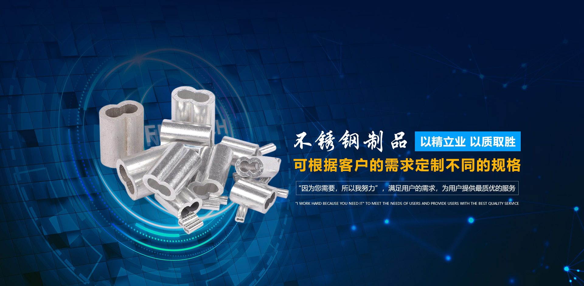 我公司生產不銹鋼鋼絲繩,鋼絲繩配件,不銹鋼索具配件等,是一家集研發、生產、銷售、售后為一體的綜合性企業。